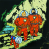 Total schöne Bettwäsche für Kinder mit der Mondrakete von Tim und Struppi, Reiseziel Mond, Schritte auf dem Mond